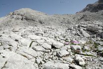 Charakter des Weges: Mit dem MTB ins Roßloch (1440 m). Zu Fuß auf schmalem Pfad zum Hinteren Boden, von dort durch Latschengelände ins Bockkar hinauf und unschwierig, aber meist weglos über Fels und Geröll über das Karl-Schuster-Biwak zum Gipfel; Trittsicherheit und gutes Orientierungsvermögen erforderlich! Genügend Getränke mitnehmen!
